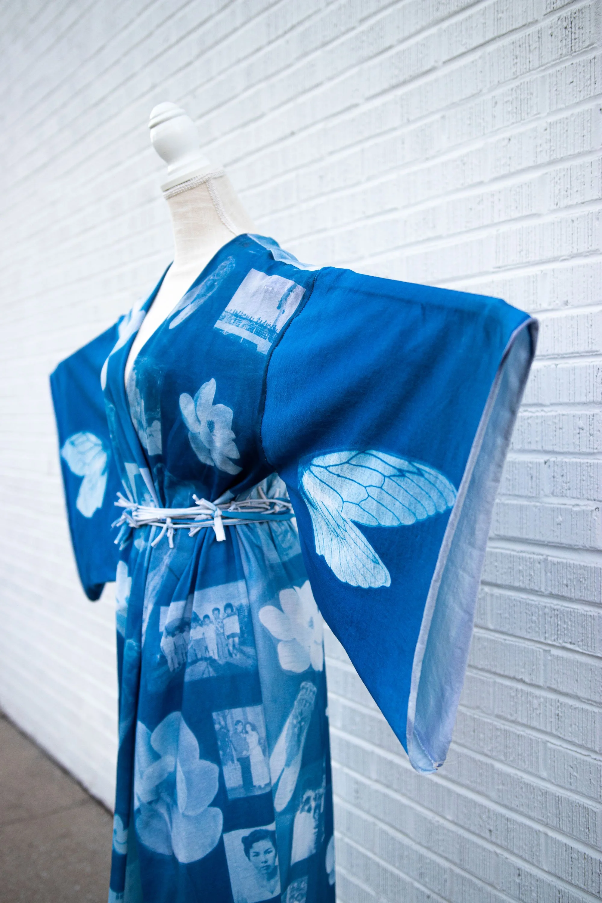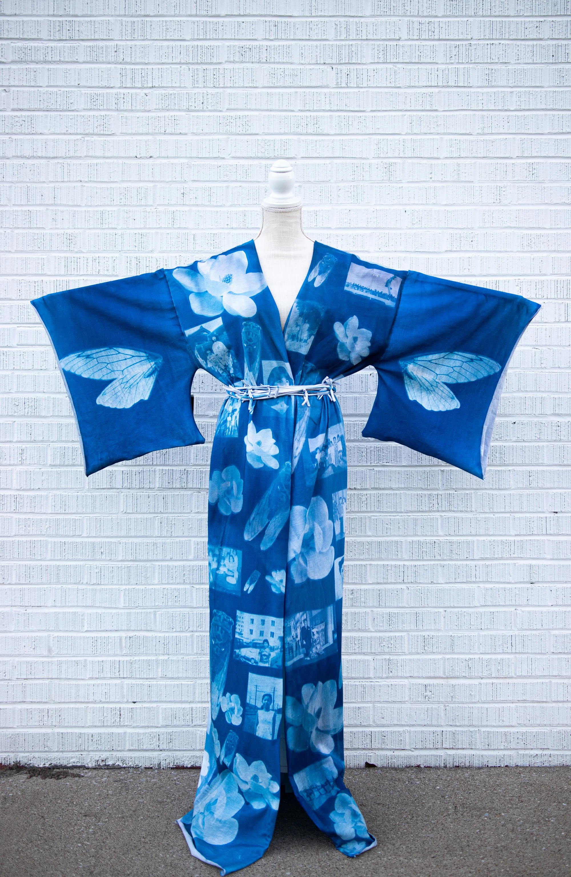 The Kimono is based off of traditional Japanese dress. Imprinted on each panel is a apart of who I am - where I came from. It is a collage of places and things from my past ancestry and childhood to early adulthood in Alabama blended together into one garment.”